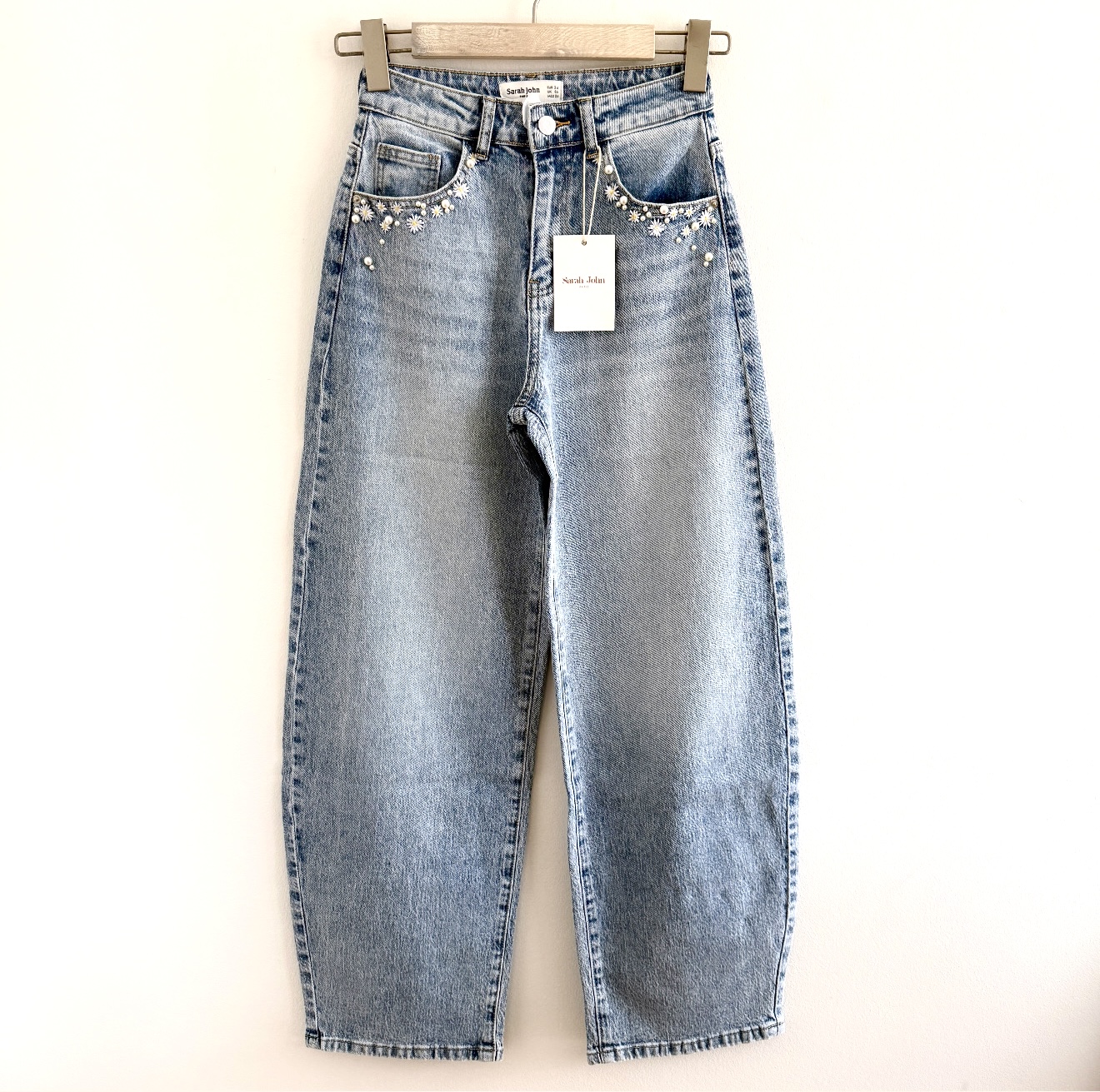 Unsere Flower Bloom Balloon Jeans überzeugt mit einer modernen Balloon-Fit-Passform, die lässig wirkt, ohne zu weit zu sein. Der Schnitt sitzt angenehm und schmeichelt der Figur. Dezente Blumenstickereien am Saum der Raschen sowie hinten an den Taschen setzen liebevolle Akzente. Die schöne, frische Jeansfarbe macht sie zum perfekten Begleiter für den Frühling – stilvoll, bequem und absolut im Trend.
