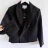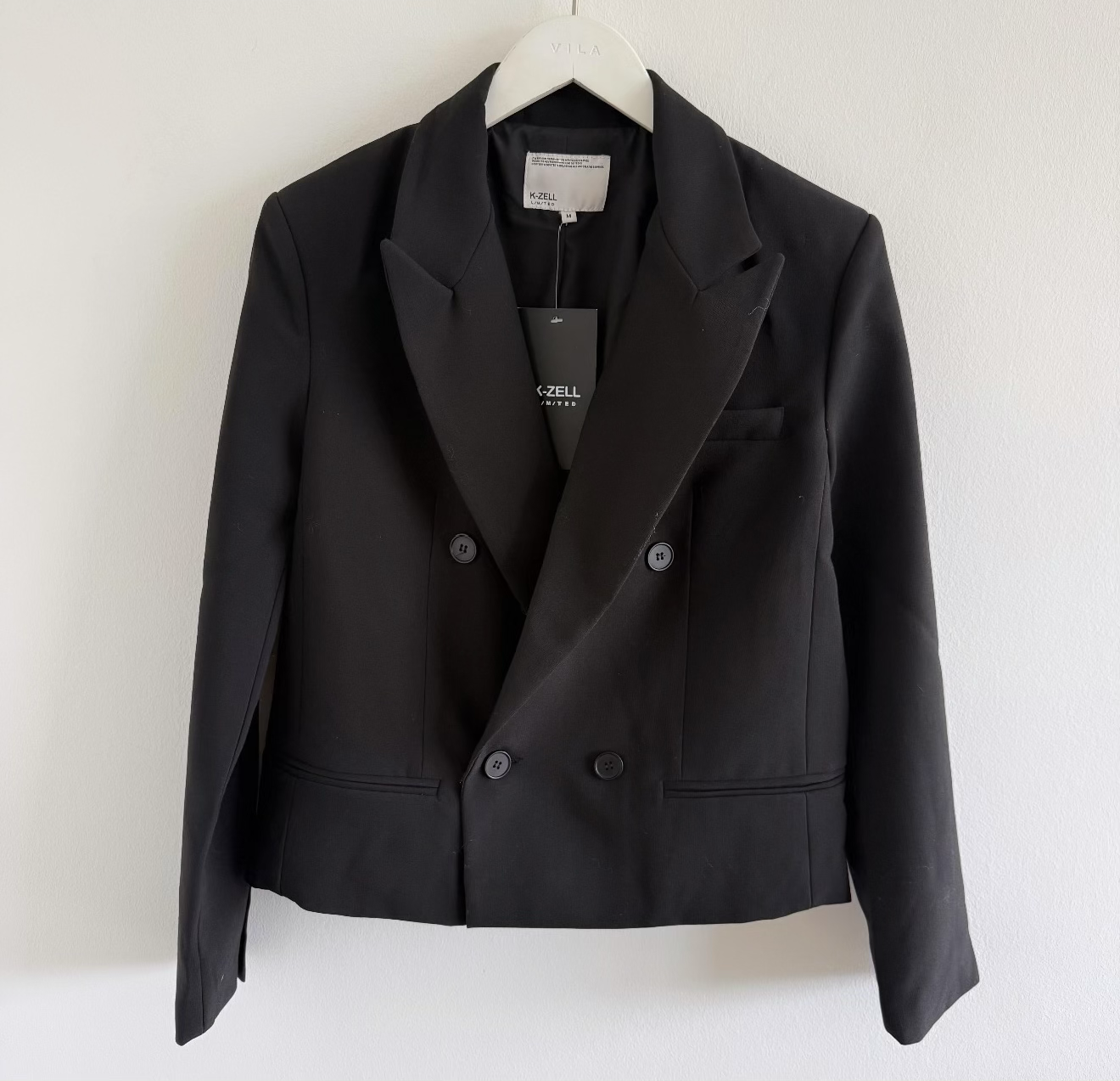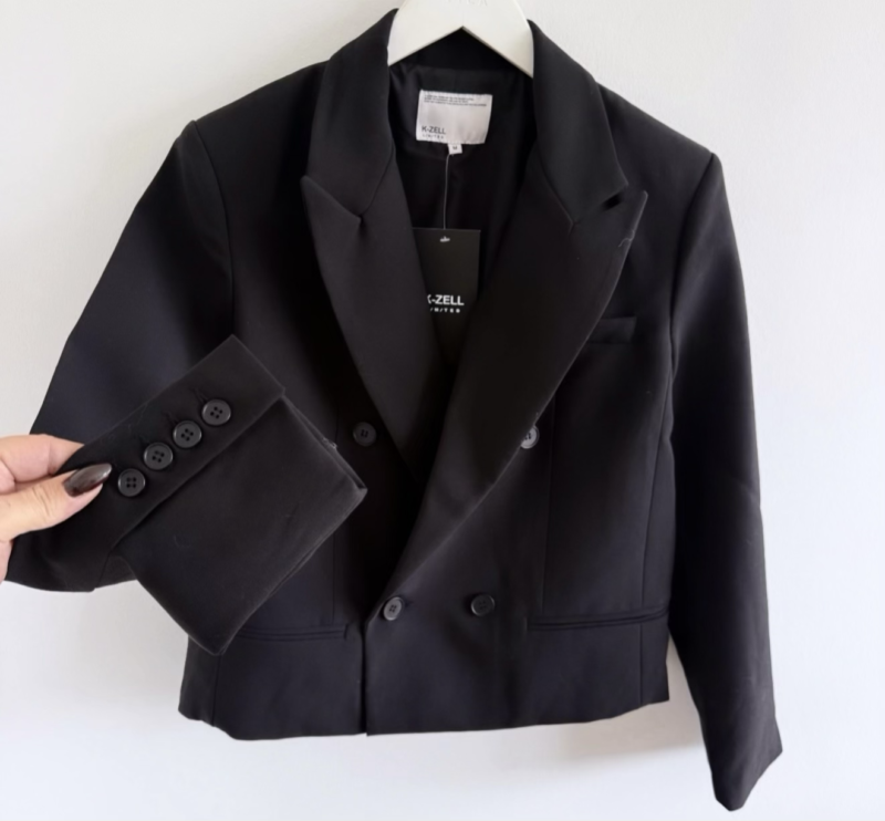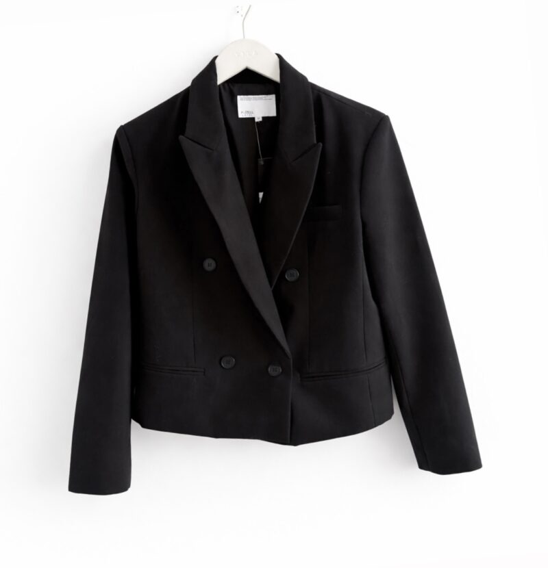 Eleganter schwarzer Blazer im zeitlosen Design. Das Modell überzeugt mit klassischem Reverskragen, zweireihiger Knopfleiste und einer femininen, leicht taillierten Passform. Der hochwertige Stoff sorgt für einen gepflegten Look und angenehmen Tragekomfort. Ideal für Business, Alltag oder elegante Anlässe.