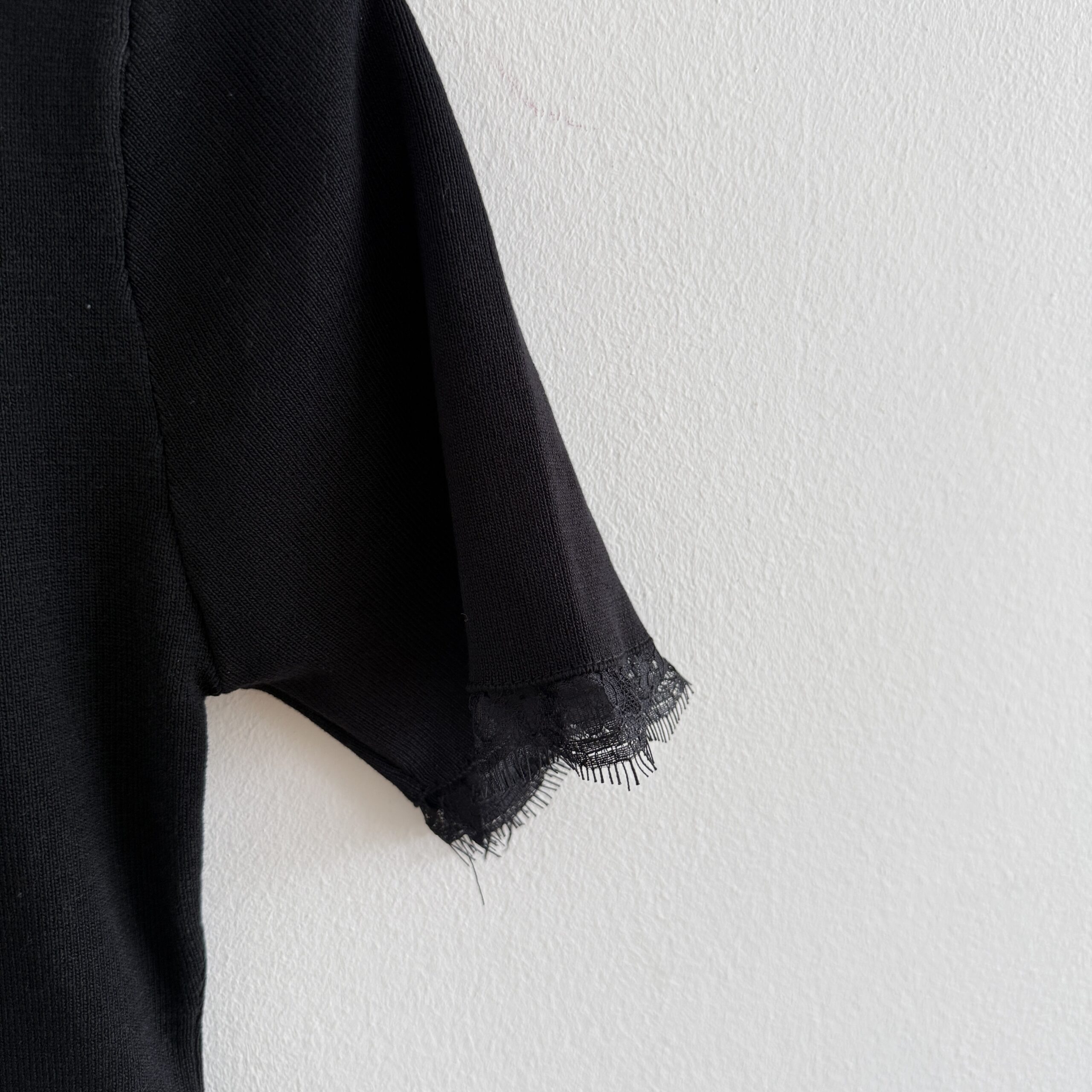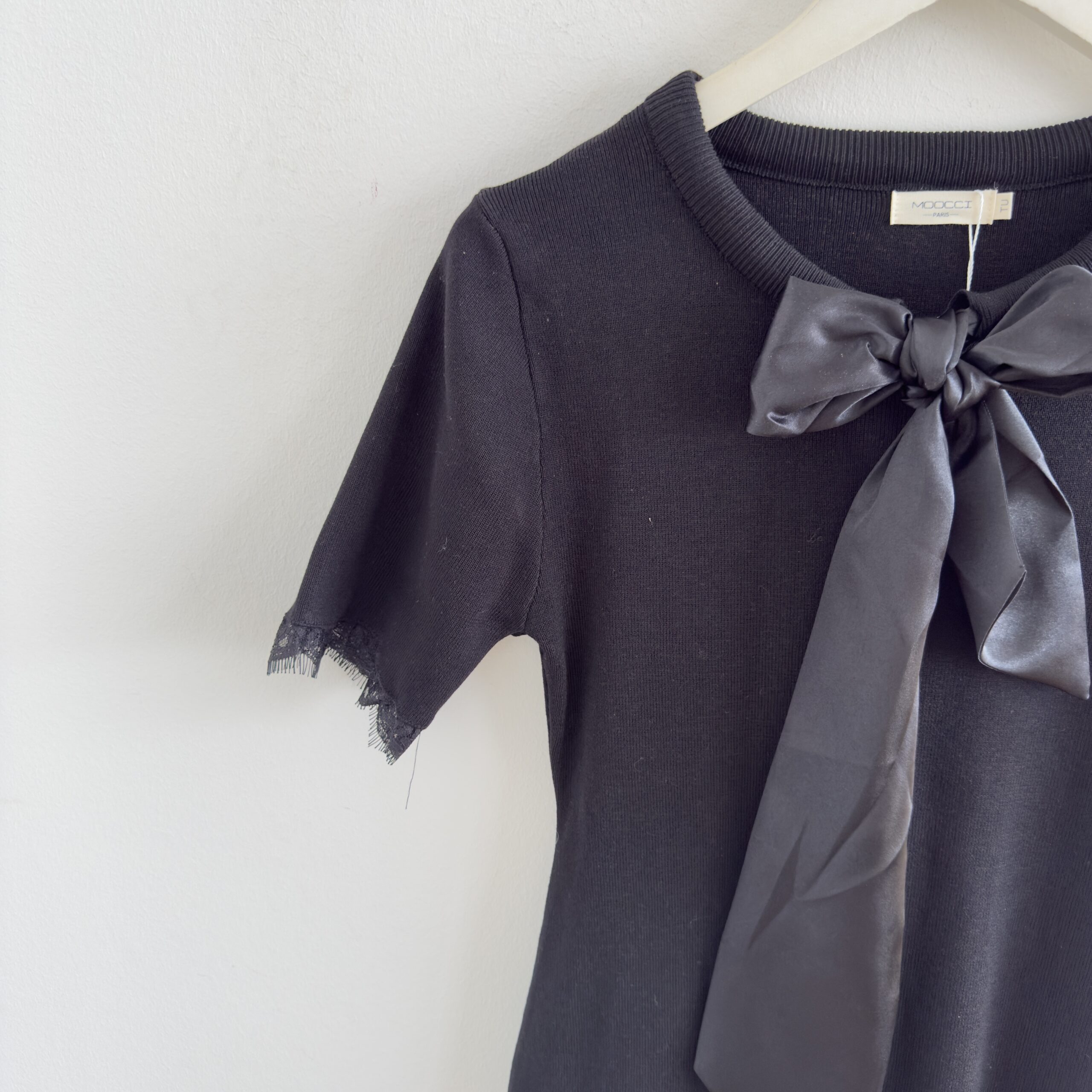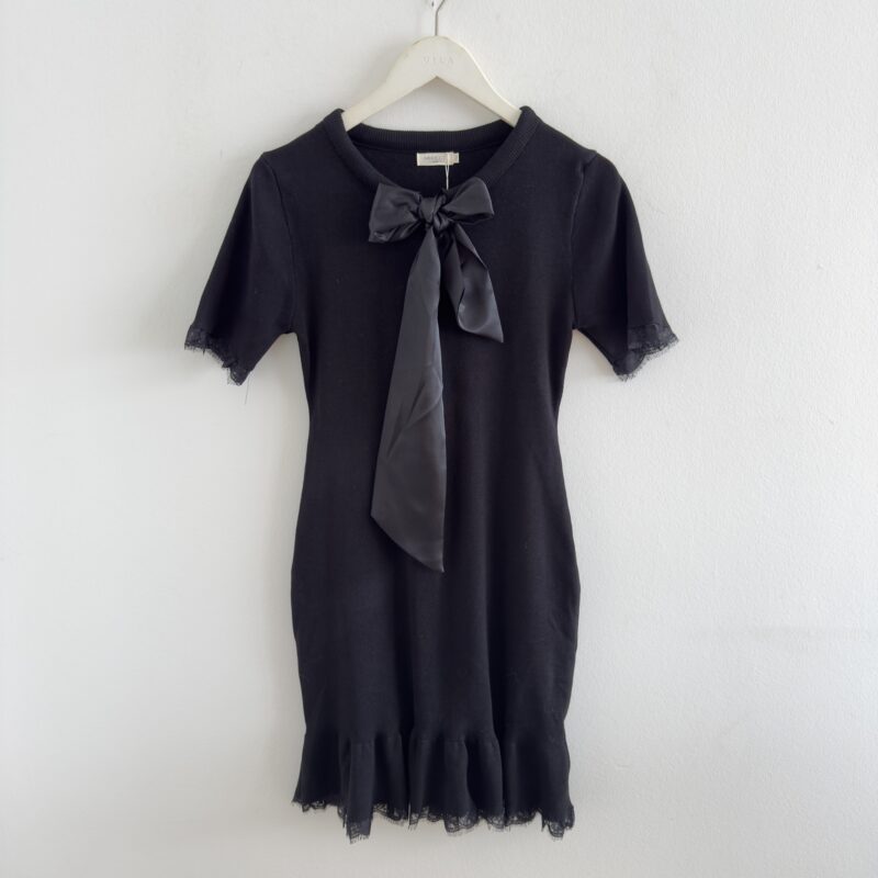 Elastisches Strickkleid mit Schleifen-Detail und Spitzen-Volants