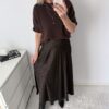 Moderner Satinrock aus 100 % Viskose – mit etwas festerem Stoff, perfekt für den Herbst. In elegantem Dunkelbraun mit schwarzem Leo-Muster. Der Rock ist Einheitsgröße und passt bequem von XS bis L. Die Länge beträgt 96 cm, der Bund ist 35 cm breit und dank elastischem Gummiband dehnbar bis ca. 38 cm – für eine bequeme, flexible Passform.