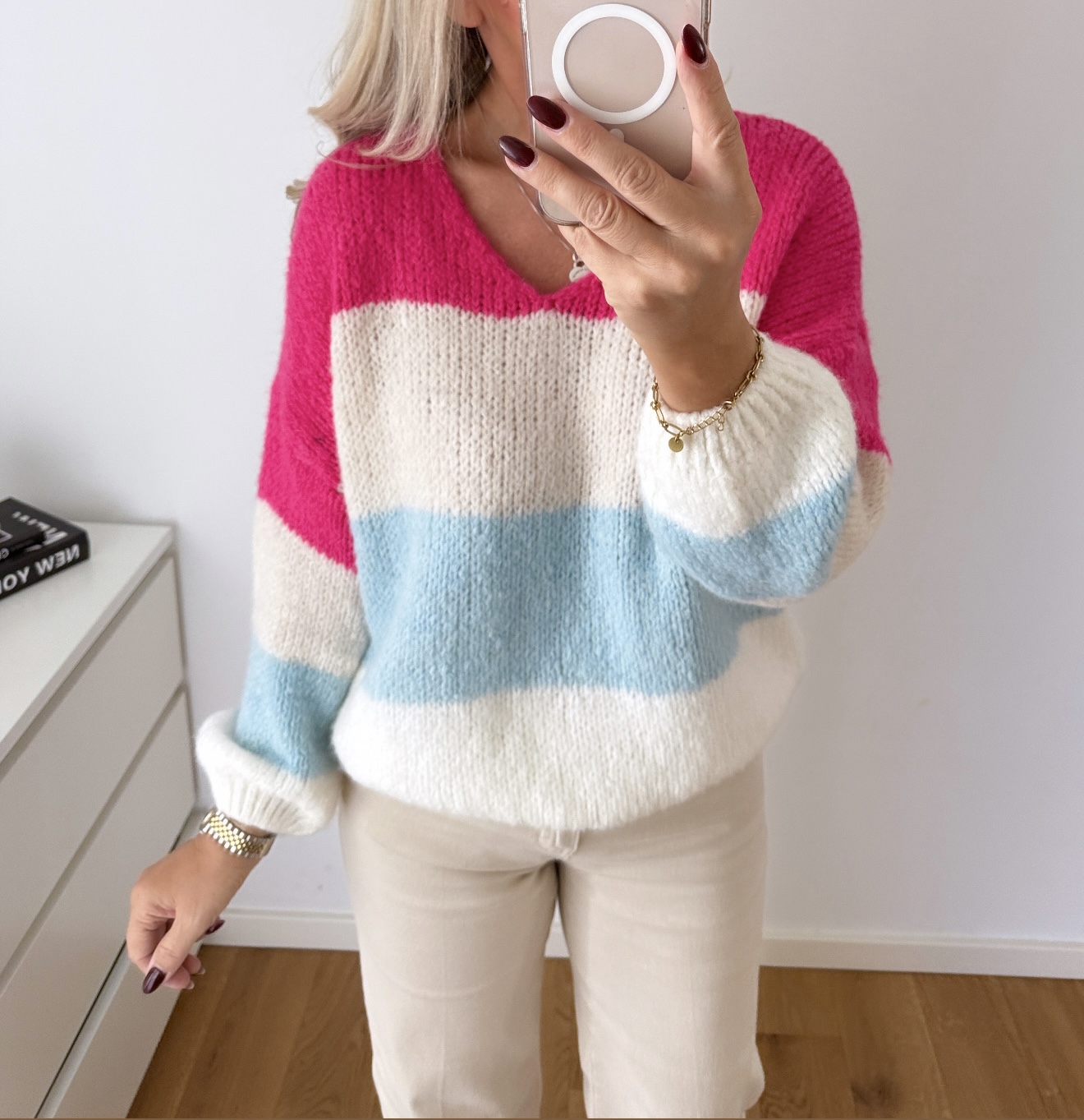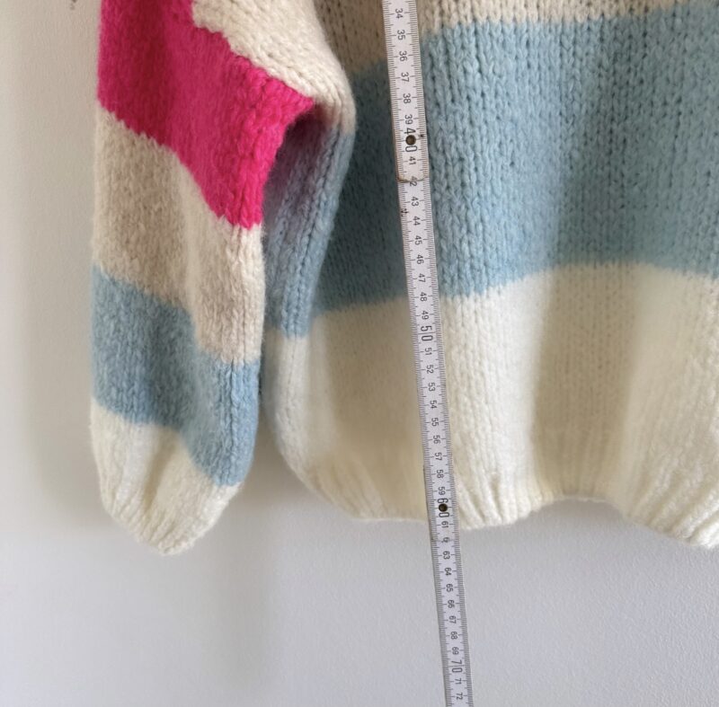 Wunderschöner Pullover in traumhaften Farben. Einheitsgröße, passt ideal von XS bis hin zu einer schmalen L (auf dem Bild trage ich Größe S).