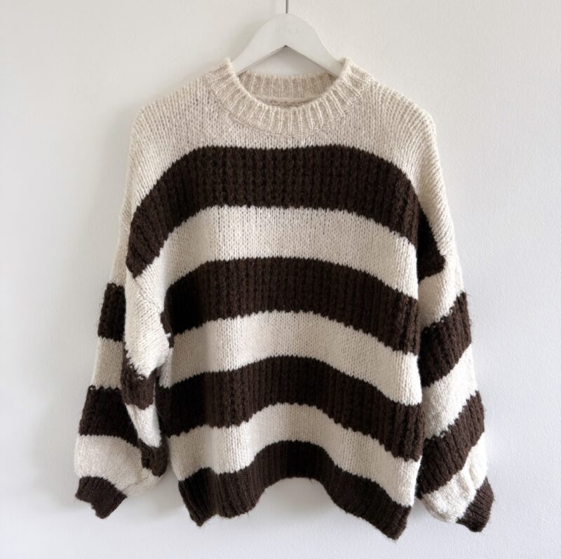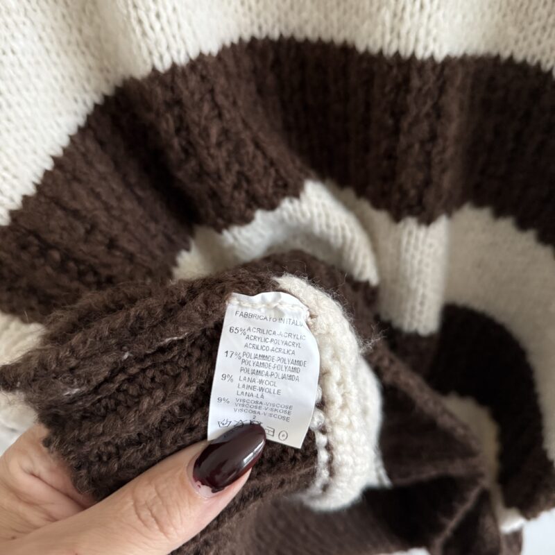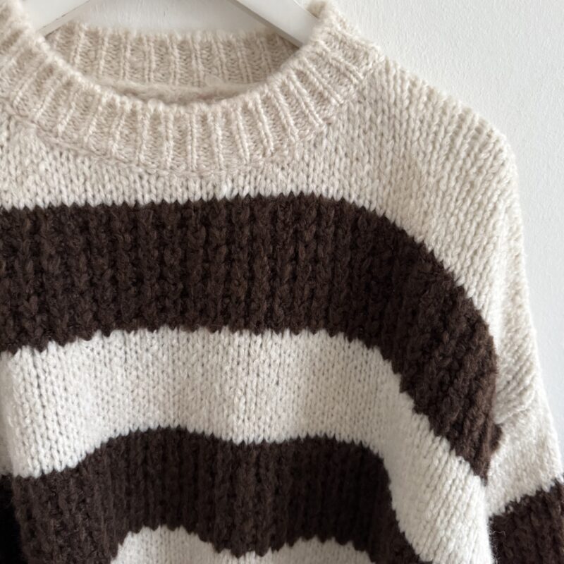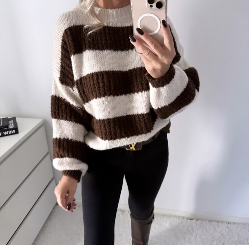 Wunderschöner, flauschiger Pullover in modernem Beige und Schokobraun-Ton. Superweich, kratzfrei und unglaublich angenehm zu tragen – ideal für gemütliche Tage mit Stil.