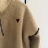 Die kontrastierenden Paspeln entlang der Ärmel verleihen dem Look eine sportliche Note, während das kleine gestickte Herz auf der Brust für ein liebevolles Details