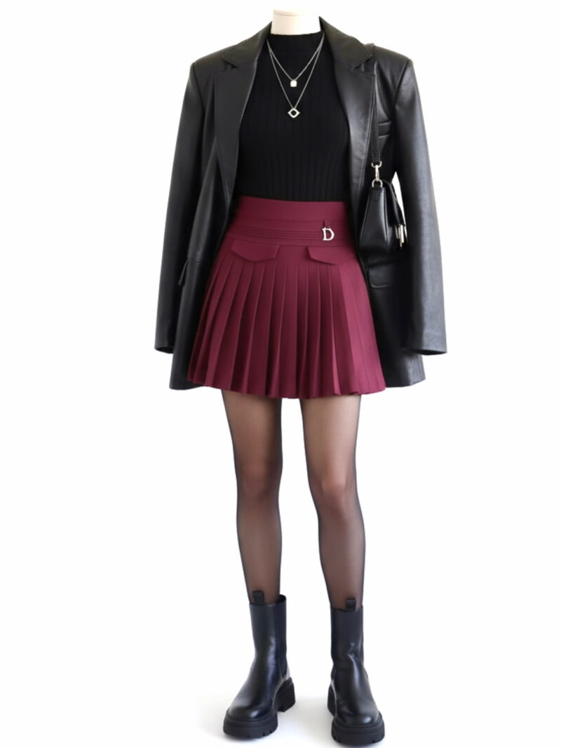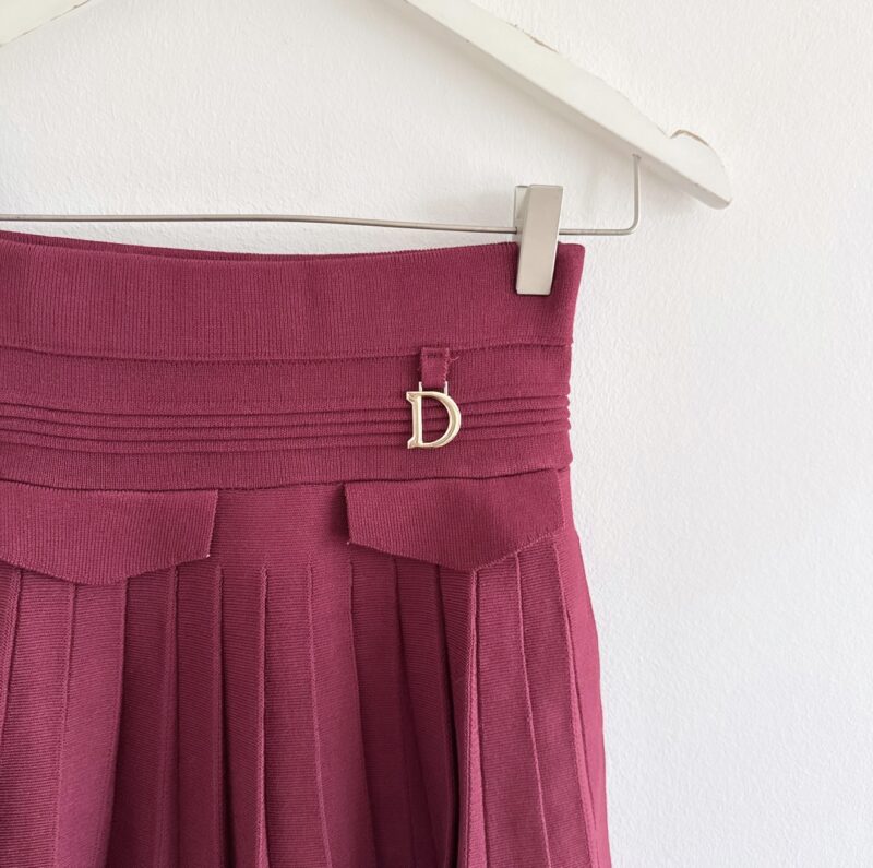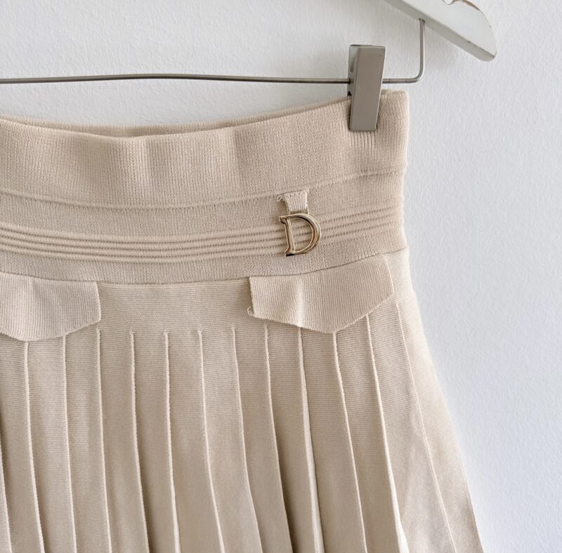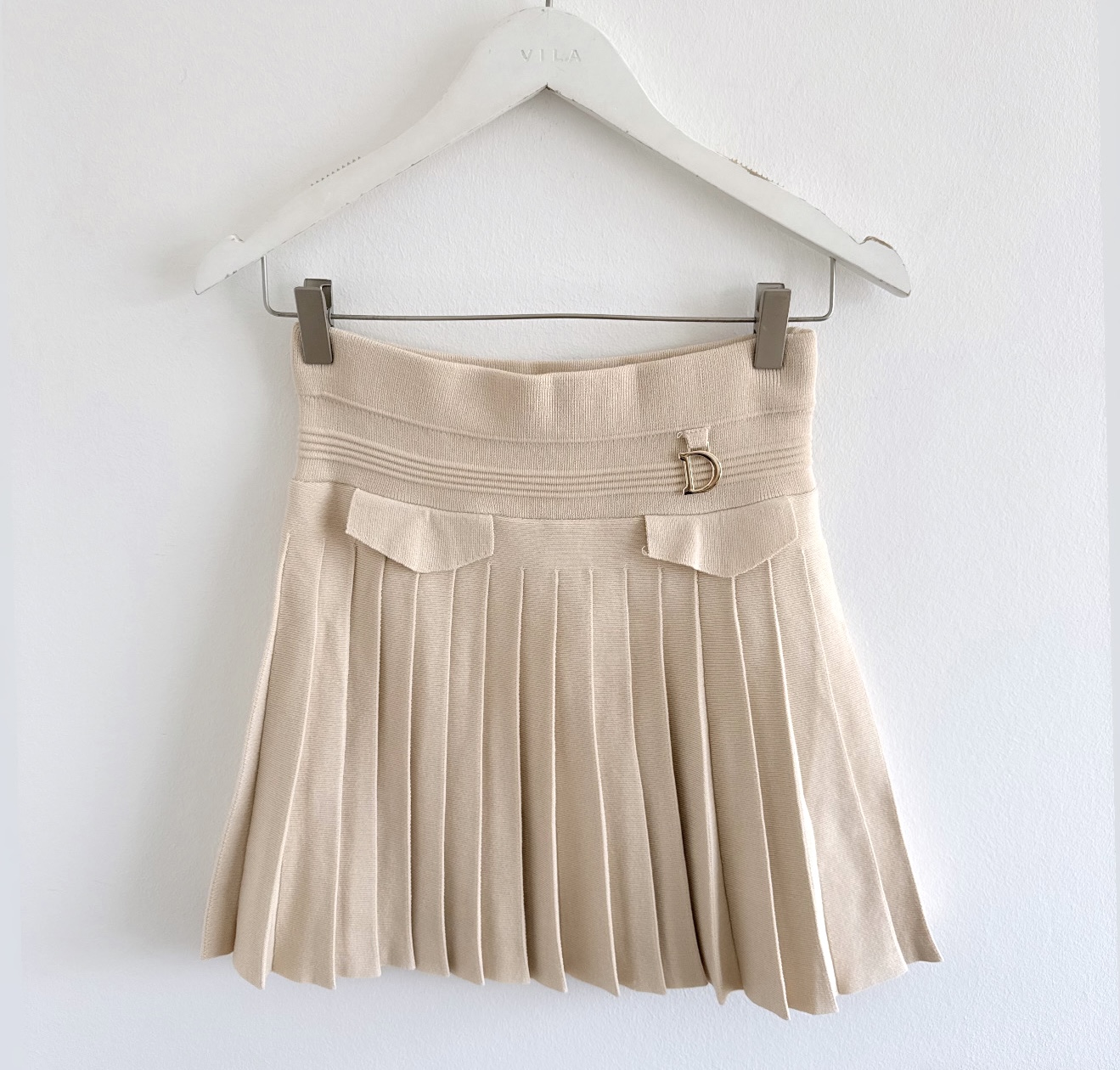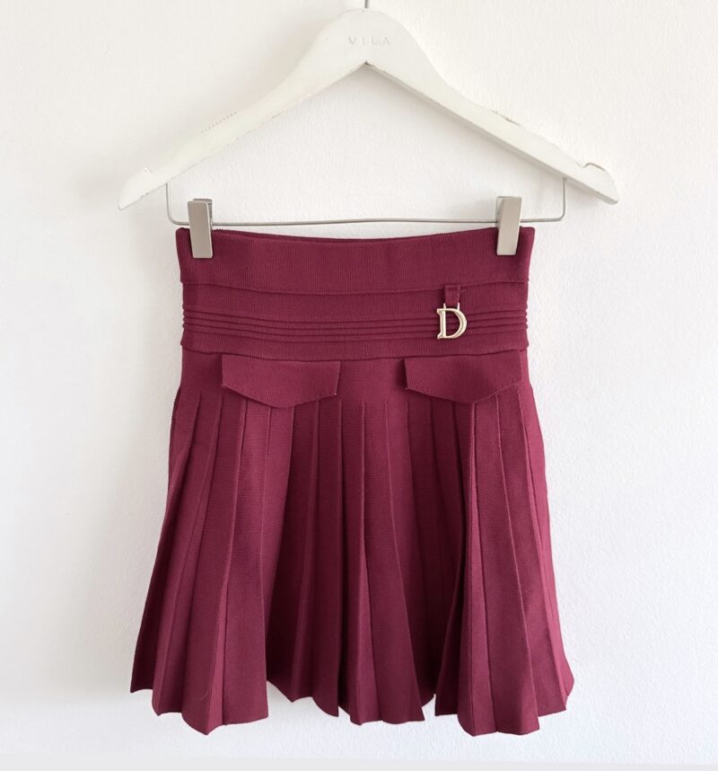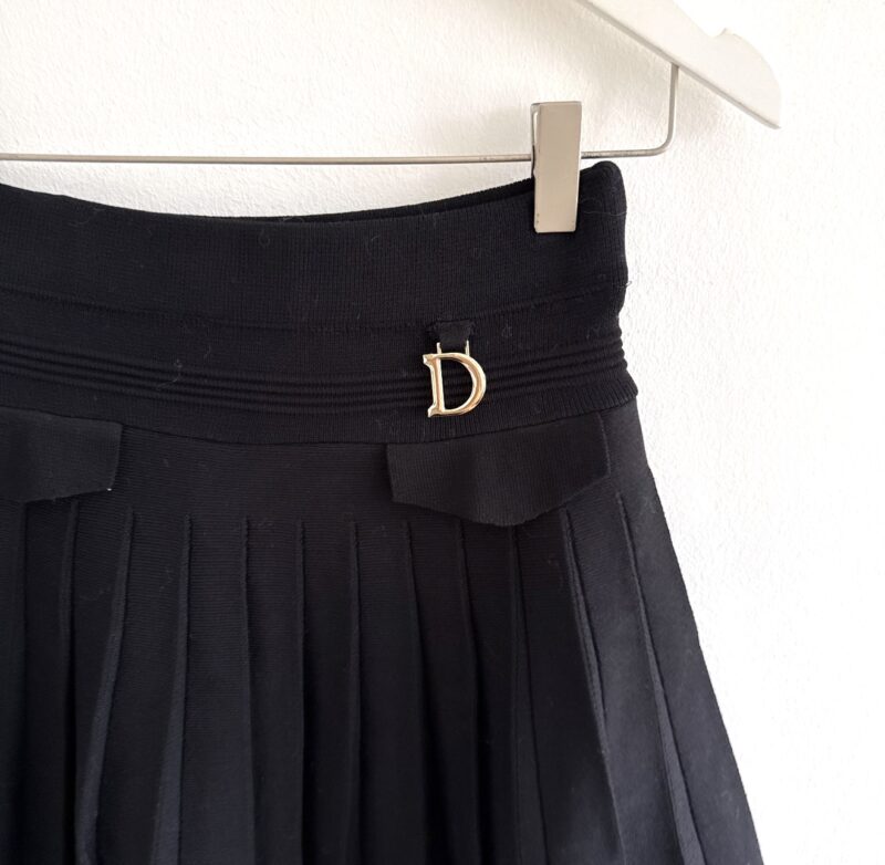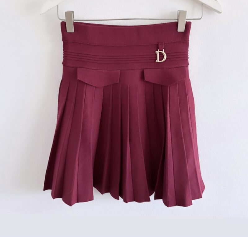 Plissee Minirock aus festem, elastischem Premium-Stoff. Sitzt perfekt, mit breitem Bund und goldenem „D“-Anhänger vorne. Einheitsgröße, ideal für XS–M. (Ich trage auf dem Foto Größe S.)