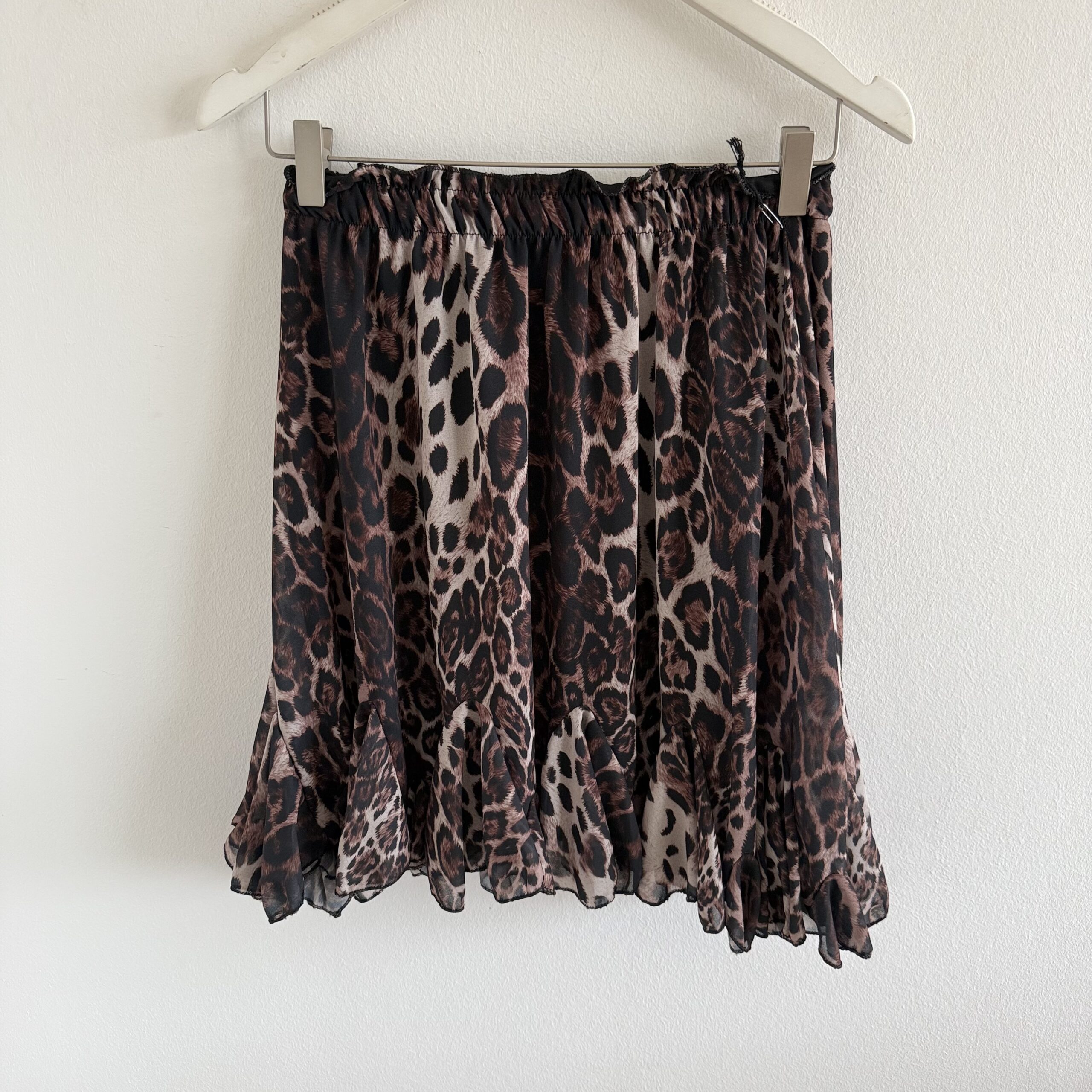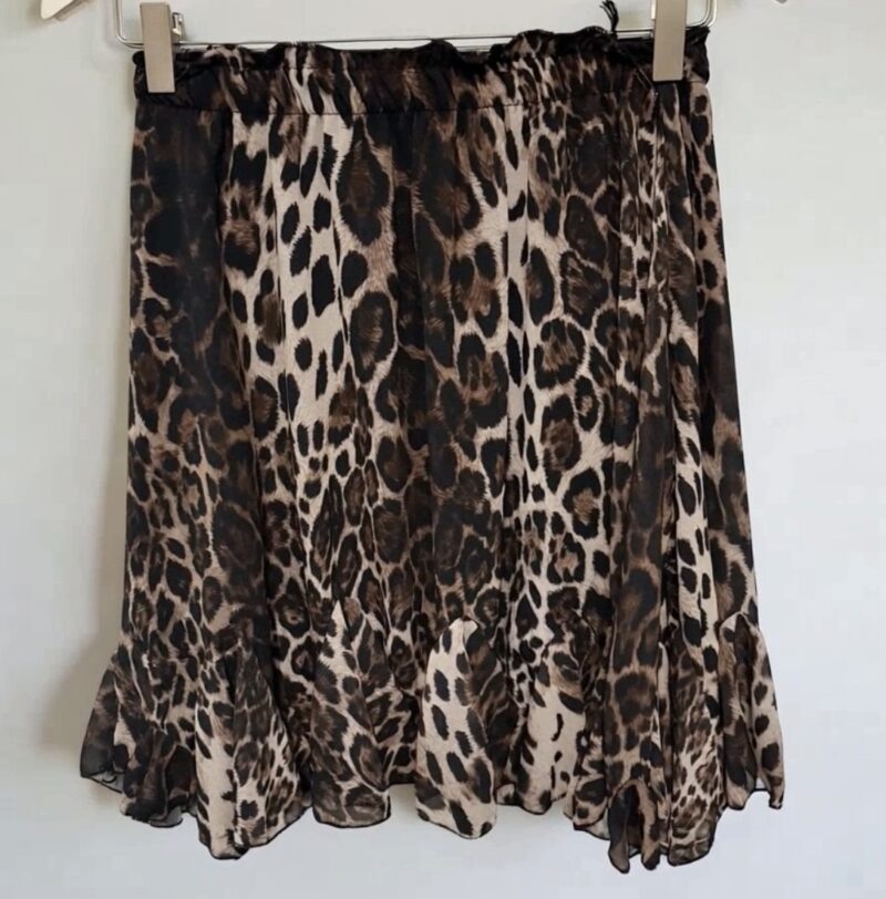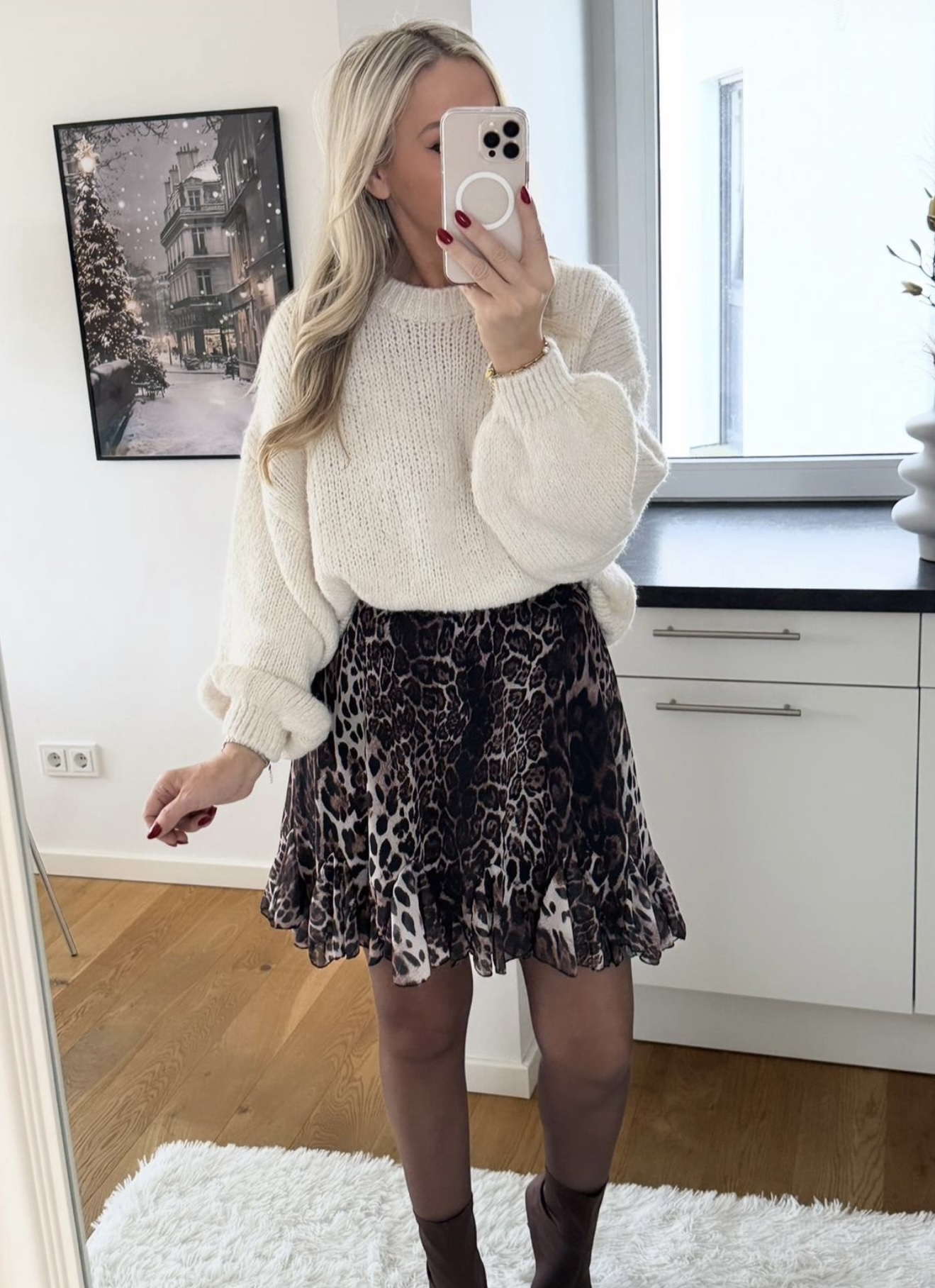 Dieser stilvolle Rock begeistert mit seinem modernen Leopardmuster in warmen Braun- und Schwarztönen. Das fließende, leicht transparente Obermaterial sorgt für eine feminine Silhouette, während der eingearbeitete Unterrock für angenehme Blickdichte und hohen Tragekomfort steht.