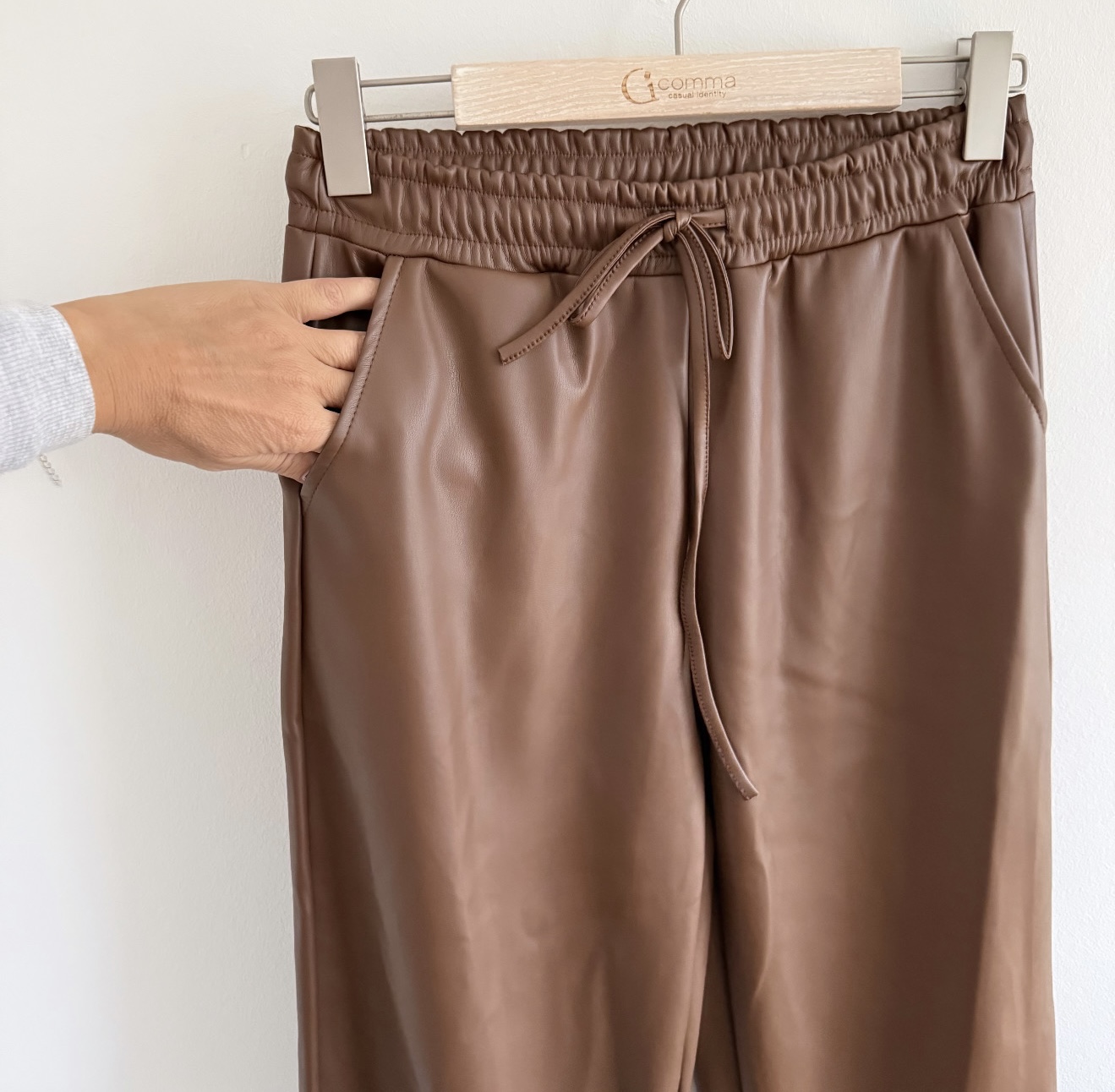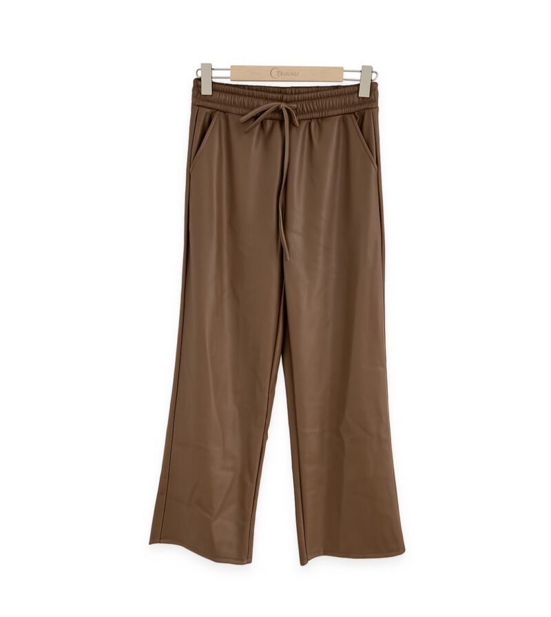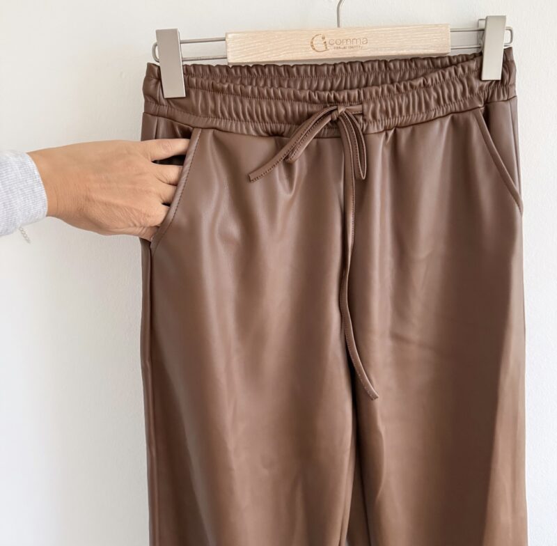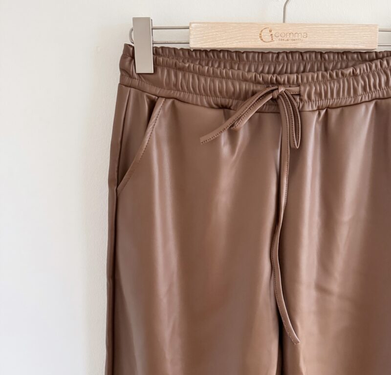 Stylische, lässige Hose aus veganem Leder mit isolierender Innenseite – ideal für kühle Tage. Der weite Bein-Schnitt und die hohe Leibhöhe mit Bindegürtel sorgen für eine moderne, bequeme Passform. Seitliche Schlupftaschen runden den Look ab – perfekt für viele Anlässe.