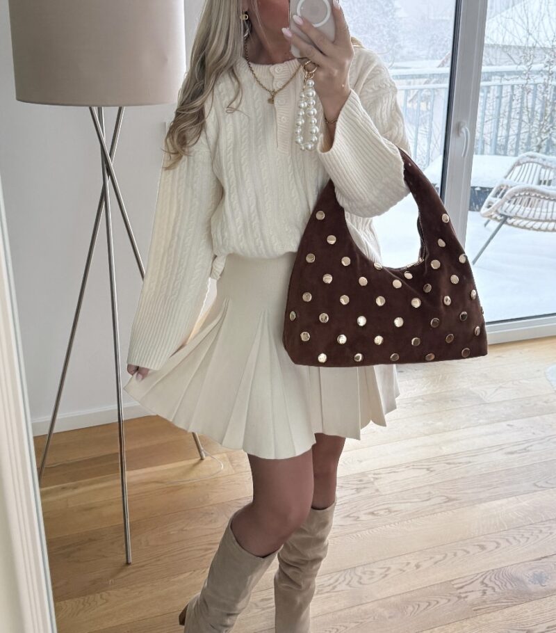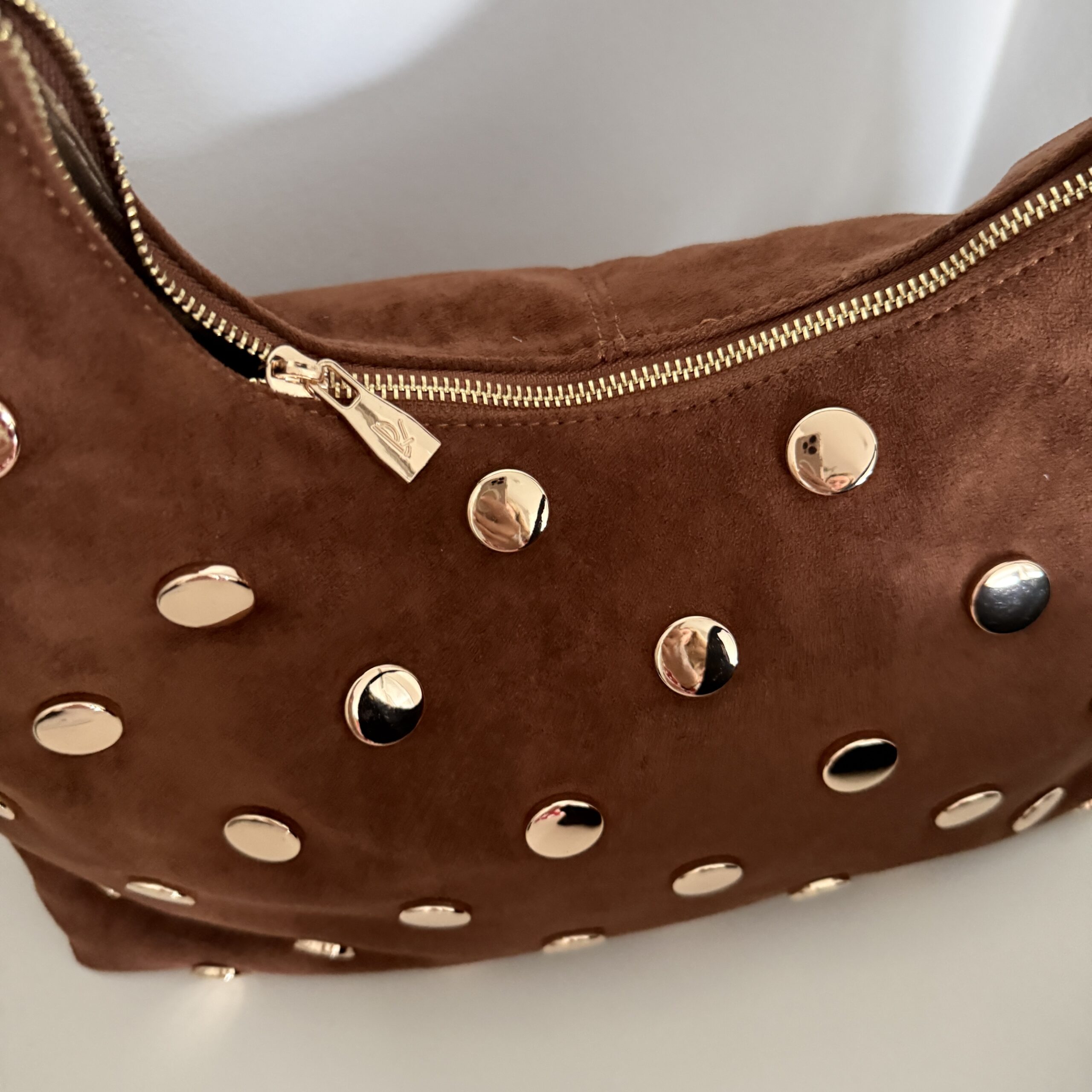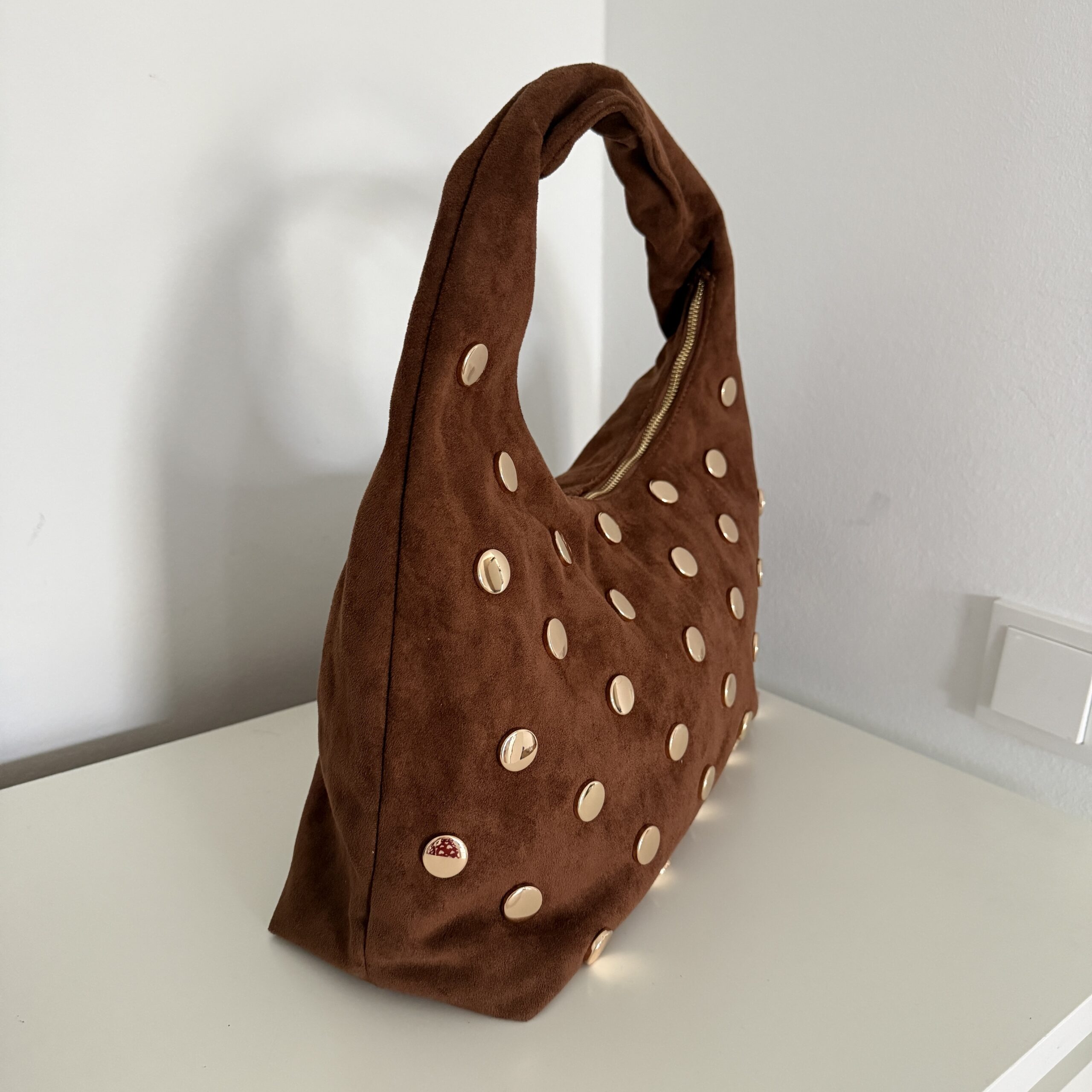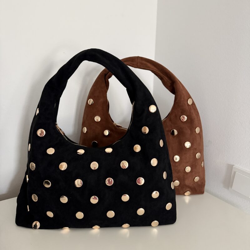 Schreibe die erste Bewertung für „Tasche in Wildleder-Optik mit goldenen Nieten“