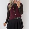 Süße Weste aus feinem, leichtem Stoff mit goldenen Knöpfen. Perfekt kombinierbar über Bodys, Blusen oder Spitzenoberteilen.